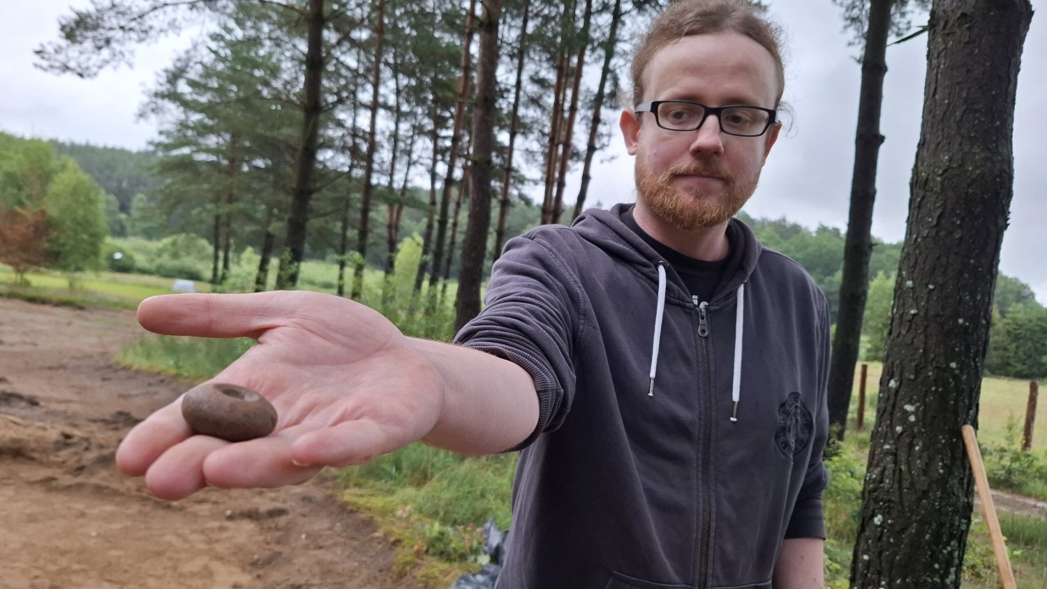 – Pracujemy na stanowisku archeologicznym, które jest osadą kultury łużyckiej, najprawdopodobniej z późnej epoki brązu – wyjaśnia dr Kamil Niedziółka z Instytutu Archeologii Uniwersytetu Gdańskiego, który odpowiada za tę część prac. – Znajdujemy tu przede ceramikę z tego okresu. Jednym z takich znalezisk jest wykonany z gliny przęślik, czyli ciężarek tkacki służący do wyrobu tkanin.