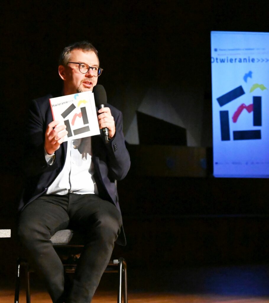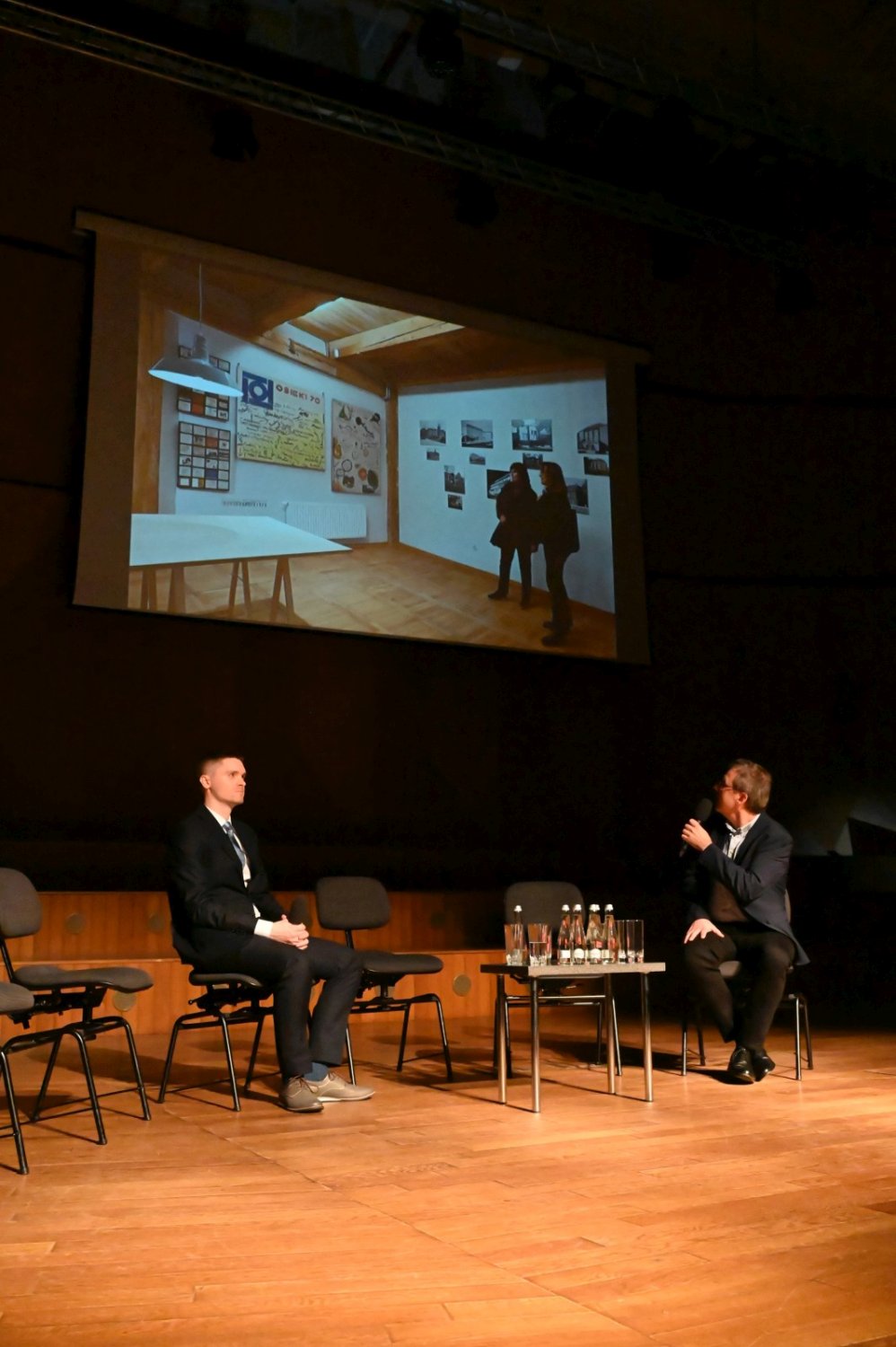 Marcin Szeląg w wielkim skrócie zaprezentował publikację towarzyszącą wystawie, stanowiącą cenne źródło pogłębiające wątki podjęte na wystawie i uzupełnienie wcześniejszych publikacji na temat Plenerów i Kolekcji Osieckiej. Ciekawym rozwinięciem wydawnictwa są fotoeseje, będące wizualnym śladem pamięci o plenerach.