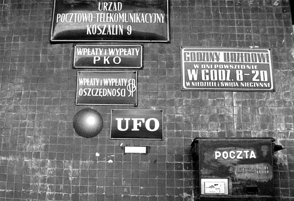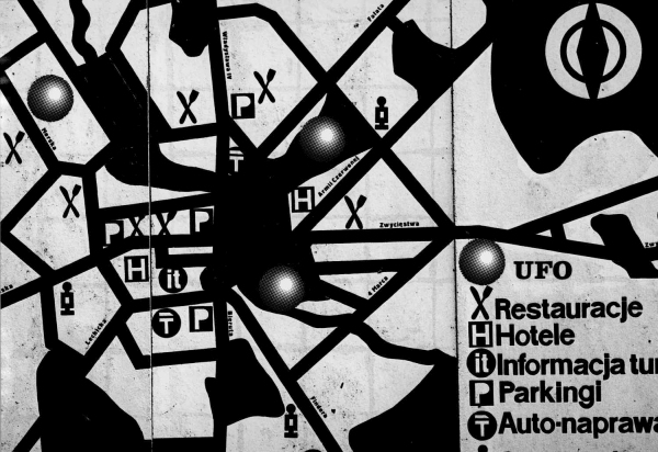 Na zdjęciach z serii UFO jako mit widoczny jest tajemniczy, kulisty raster kolonizujący przedmioty i przestrzenie, w pewien sposób emanujący z ukazanych zdarzeń. Fotografia jest tutaj swego rodzaju przedłużeniem oka flâneura, który spacerując ulicami miasta, penetruje jego zakamarki, odkrywając zaszyte w nich ślady obcości. Kulisty znak, przypominający fragment wydrukowanego obrazu w znacznym powiększeniu, wprowadza problematykę skali i różnych rejestrów widzialności. Pracując nad cyklem, artysta zastosował strategię subwersji. Przyjmując konwencję fotografii dokumentalnej, zamieścił na zdjęciach tajemnicze znaki, przekształcając ich pierwotne znaczenie, by wyrazić krytykę systemu i ujawnić ukryte mechanizmy kontroli. Na wizerunki rzeczywistości nałożył pewnego rodzaju maski, które zamiast ukrywać, odsłaniają jej wybrane przejawy.