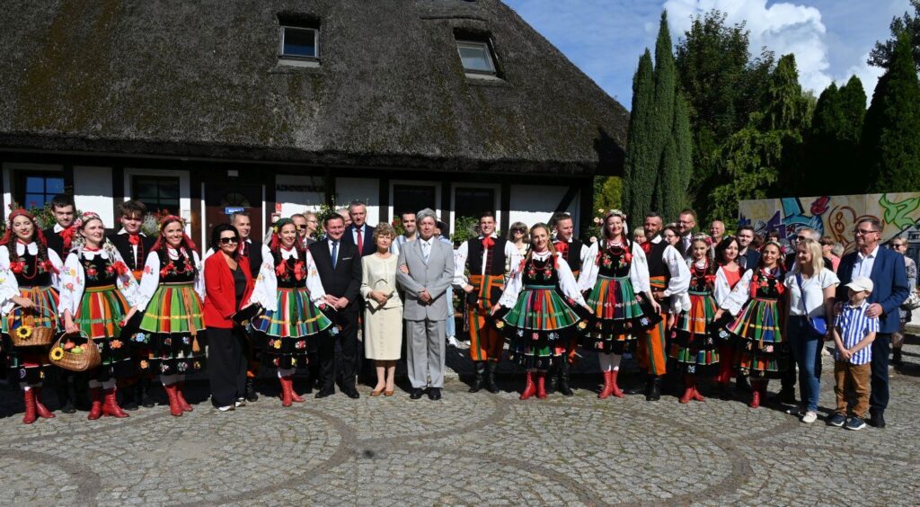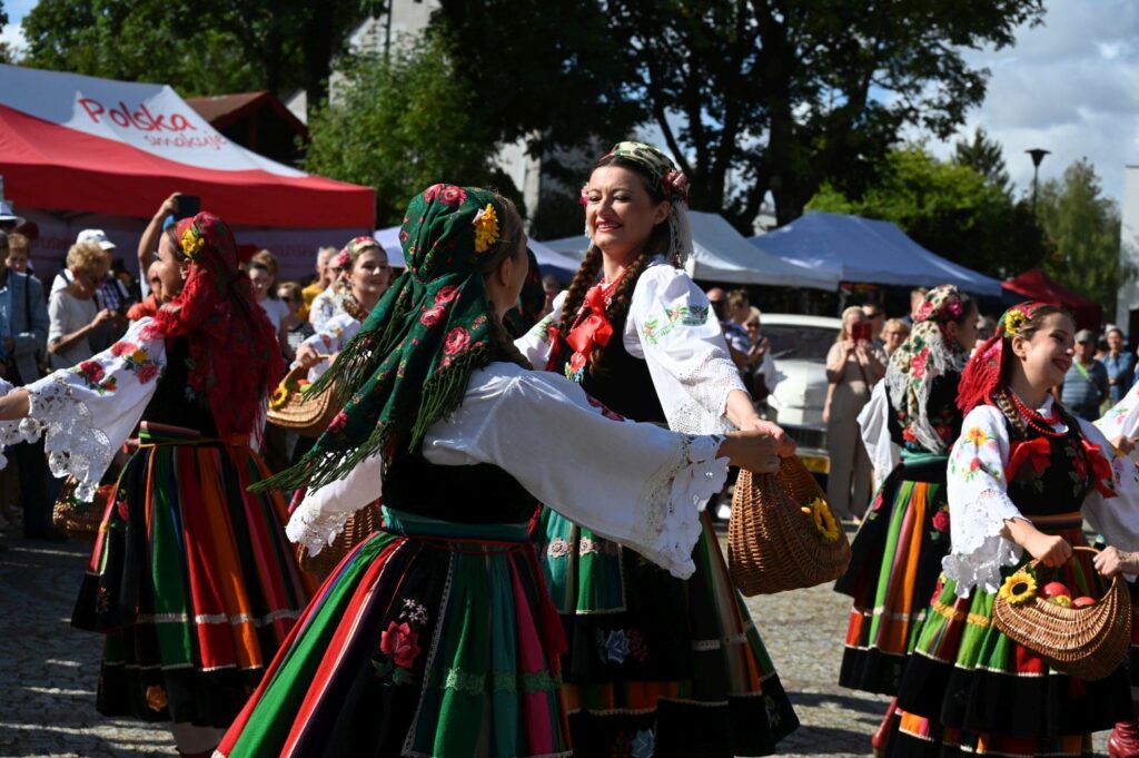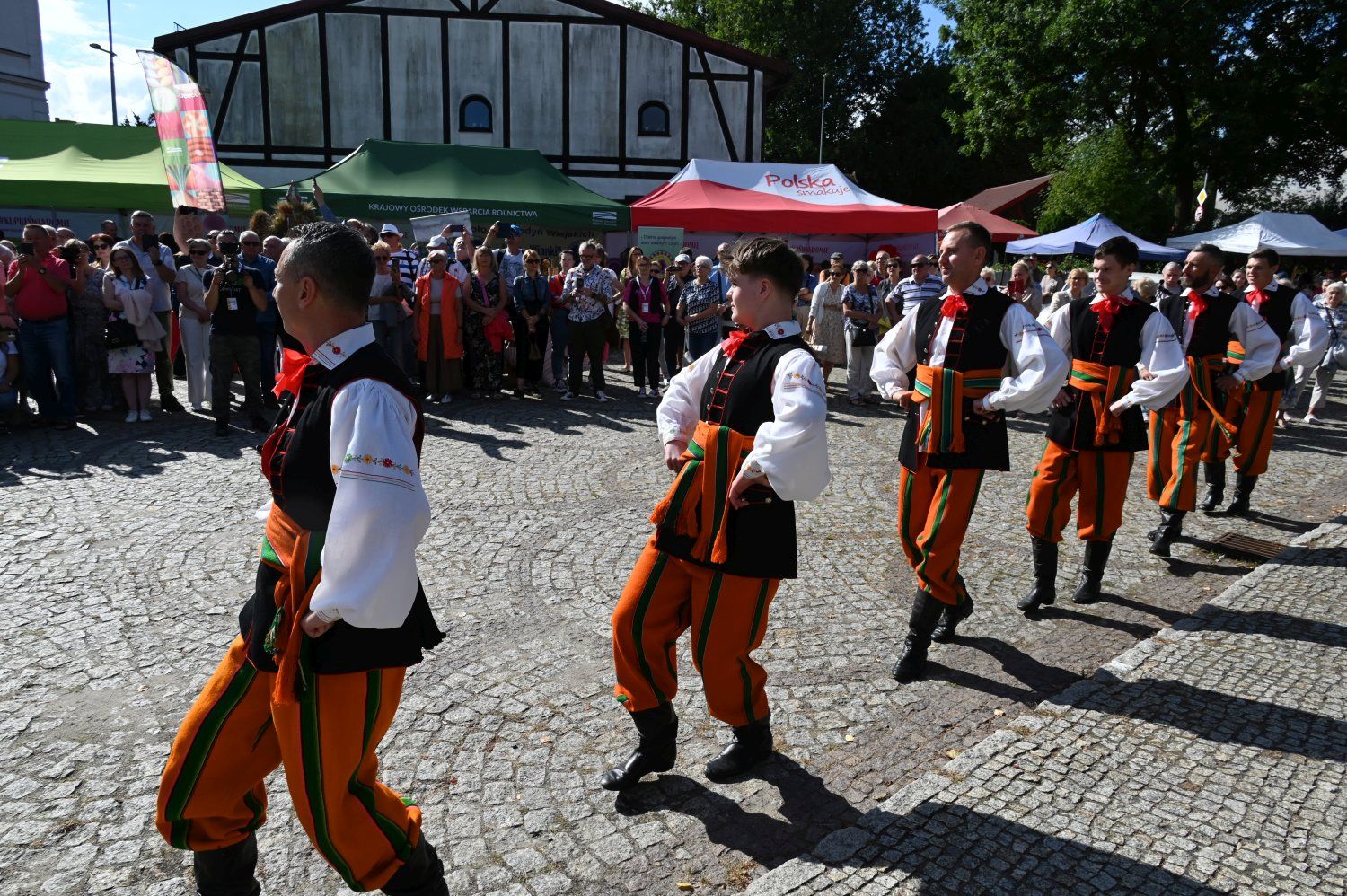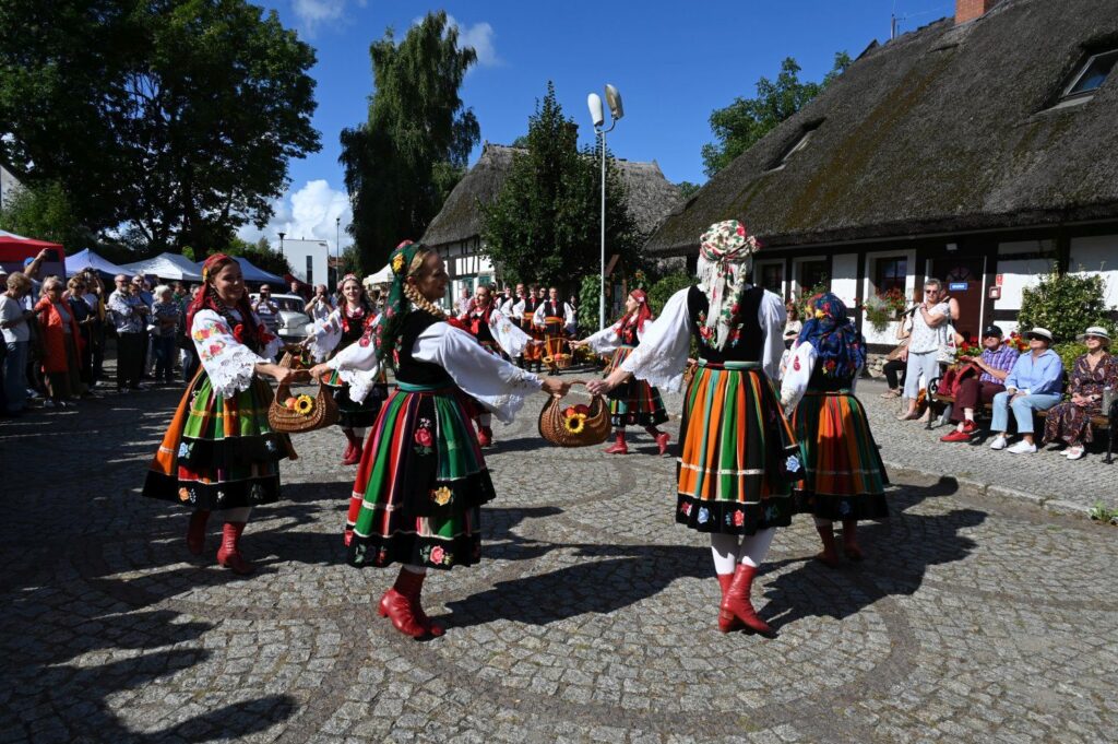 Tę część wydarzenia uświetnił wspaniały występ Zespołu Tańca Ludowego Bałtyk. Tancerki i tancerze w przepięknych strojach zaprezentowali tańce ludowe wprowadzając zebranych w zachwyt i sielski, dożynkowy klimat. Ich popisy były nagradzane głośnymi, w pełni zasłużonymi brawami!