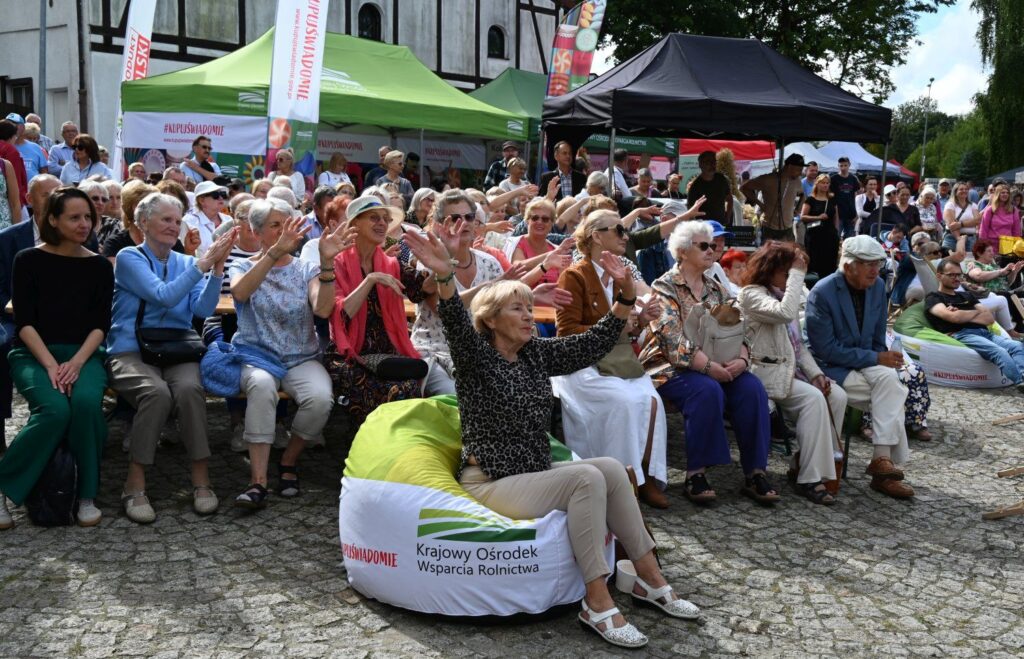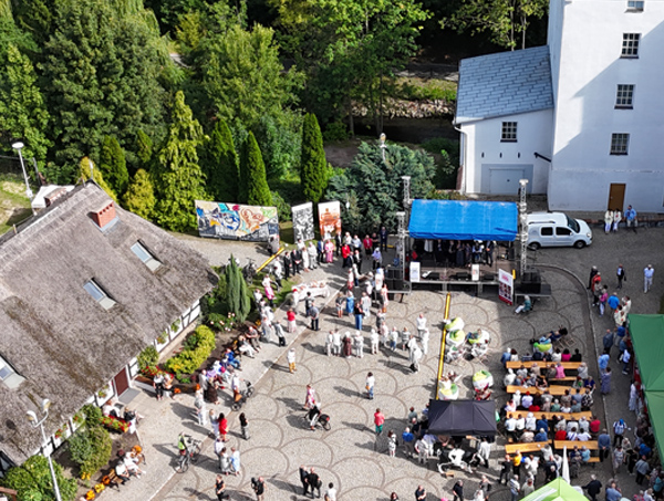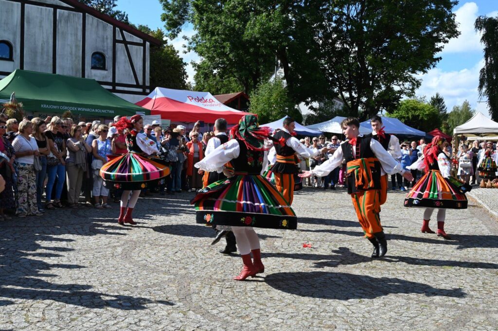 Między występami zebrana publiczność mogła raczyć się pysznościami na stoiskach kół gospodyń wiejskich, które na dziedzińcu pojawiły się dzięki współpracy z Krajowym Ośrodkiem Wsparcia Rolnictwa Oddział Terenowy w Koszalinie. Koło Gospodyń Wiejskich z Rusowa przez cały czas trwania festynu przygotowywało z udziałem publiczności wieniec dożynkowy, który na zakończenie trafił na wystawę.