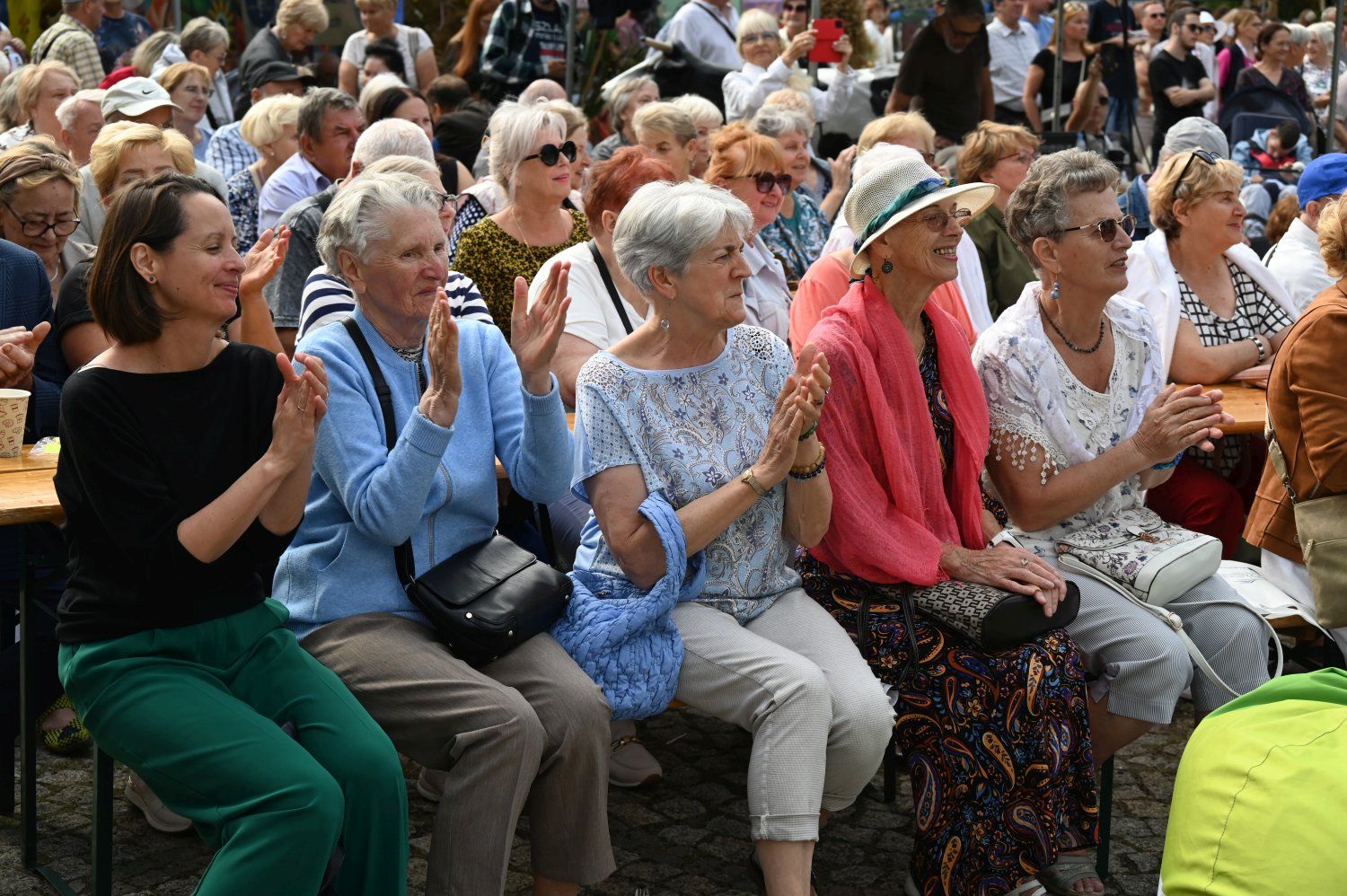 Specjalne podziękowania i brawa odebrała Bernarda Durbacz, która od lat prowadzi zespół. Zdradziła zebranym, że występowała podczas Dożynek Centralnych w 1975 roku. – Warunki były, jak w wojsku. Zjechały zespoły w różnych miast i musieliśmy być zgrupowani w jednym miejscu. I mimo, że byłam z Koszalina to zostałam zakwaterowana w akademikach na ul. Rejtana – wspominała.