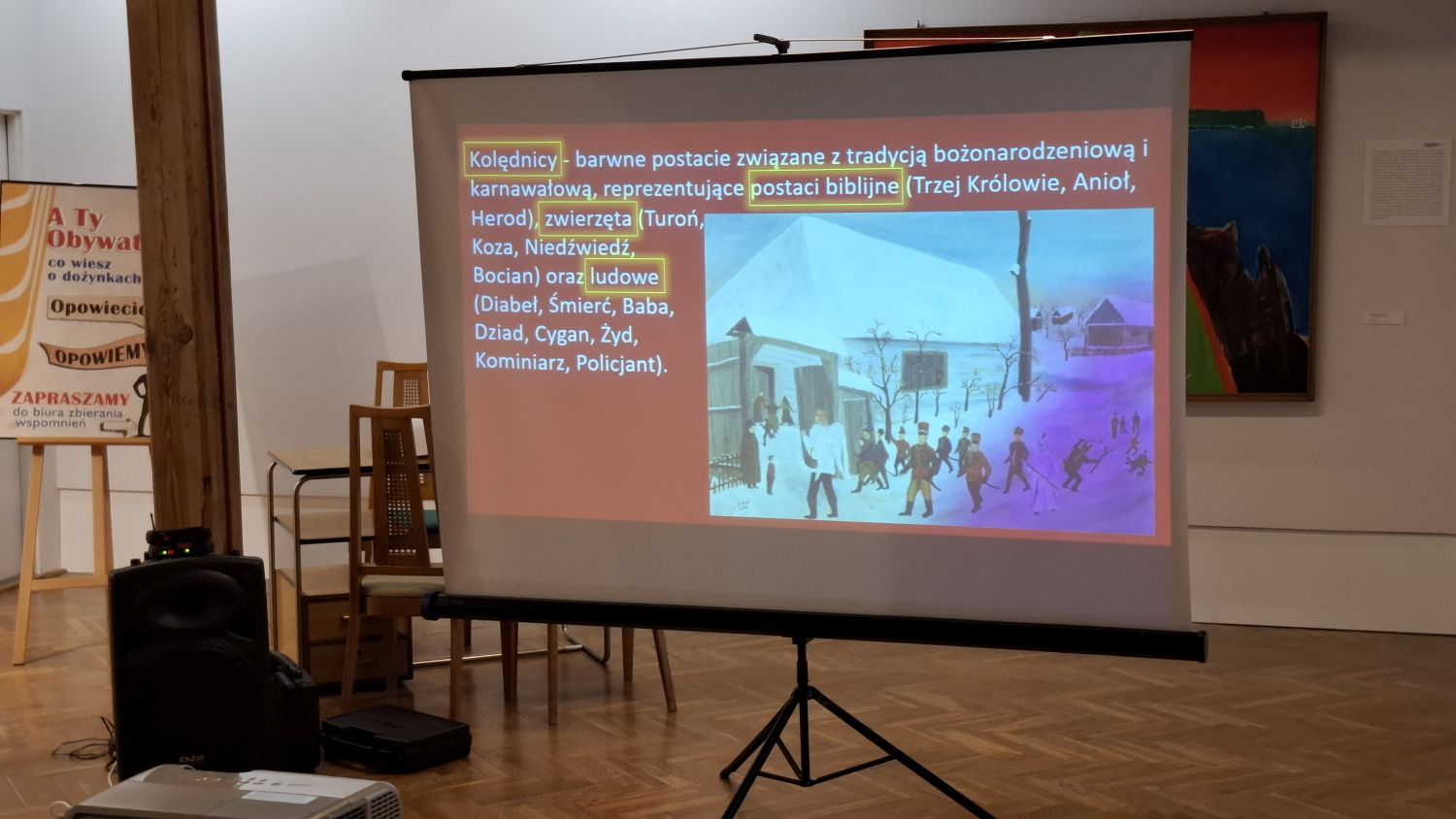 Ważną częścią spotkania była także opowieść o samej tradycji kolędowania, czyli chodzenia po domach grup przebierańców. Uczestnicy mogli dowiedzieć się m.in., w jakie stroje przebierali się najczęściej kolędnicy i co one oznaczały.