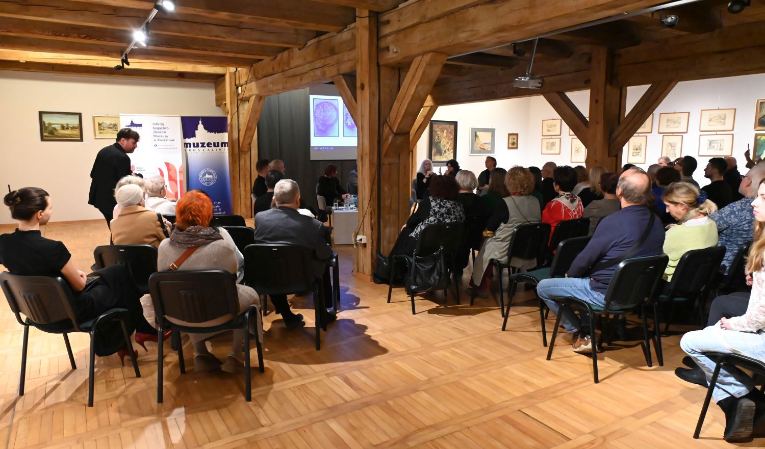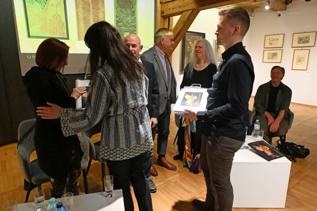 Po powitaniu gości przez Panią Dyrektor Joannę Chojecką i oficjalnym otwarciu wydarzenia przez Zastępcę Prezydenta Koszalina Sebastiana Tałaja, odbyło się spotkanie panelowe, zatytułowane „Wokół Uniwersum Edwarda Rokosza – wspomnienia, które pozwoliło spojrzeć na Edwarda Rokosza z bardziej osobistej perspektywy.
