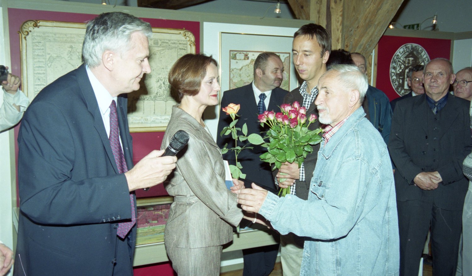 1. Jerzy Kalicki (po lewej) na otwarciu wystawy „Koszalin od średniowiecza do współczesności” (wrzesień 2003).