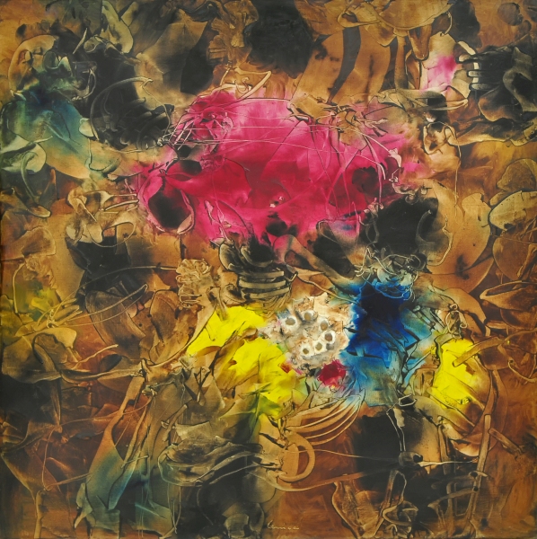 The work represents the artist’s mature style. In the late 1940s and then from 1956 onwards, Lenica worked with art informel – a type of formless abstraction, developing in Western European countries under the influence of existentialism and the anti-humanist experience of World War II. After the political thaw of 1956, this type of abstraction became particularly popular among artists in Poland as a formula for modern painting, breaking with the limitations of the doctrine of socialist realism imposed on artists by the authorities. In 1963, although informel painting was no longer as innovative as it had been in the middle of the previous decade, it did bear the hallmarks of subversion. In 1959, the Communist Party authorities issued an order limiting public exhibitions to a maximum of 15 per cent abstract art content. From then on, nonrepresentational art became a form of resistance to the top-down dictates of communist cultural policy. In the realities of regulated artistic freedom, the first Osieki plein-air workshop in 1963, colloquially known as the ‘unofficial abstractionist rally’, was organised. Artistic freedom thus became its founding principle, and Lenica’s paintings one of its manifestations.