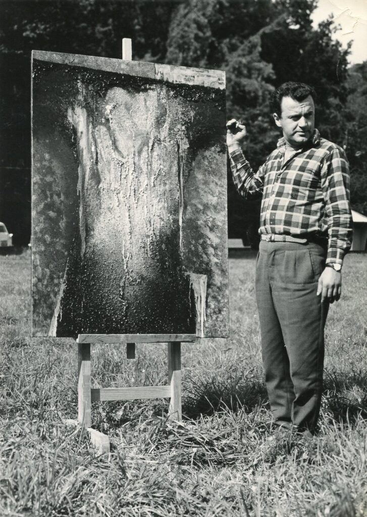 Obraz Bez tytułu namalowany na pierwszym plenerze w Osiekach zdradza zainteresowanie malarza bezkształtną materią i jej mistyką. Dzieło zapowiada cykle Totemy białostockie (1964) i Totemy żoliborskie (1966), odnoszące się do motywu drzewa i wizerunków mitycznych przodków. Prace z tych cykli nadawały kształt archaicznym symbolom i kojarzyły się z kultem religijnym. Motyw totemu eksplorowany był w powojennej twórczości przez wielu artystów. Dostrzegano w nim ładunek regeneracyjny, pozwalający przepracować ból egzystencjalny spowodowany okropnościami wojennej zagłady oraz dehumanizację ideologii racjonalizmu. Obraz z kolekcji osieckiej można potraktować jako przykład abstrakcji „pretotemicznej”, ukazującej materię w poszukiwaniu formy. Substancja malarska zdaje się na oczach widza gęstnieć i zastygać. Surowe przedstawienie utrzymane w brązach i czerniach nosi znamiona prefiguracji, ukazuje znak figury ludzkiej lub drzewa, być może też ich syntezy jako echo wielokrotnie reinterpretowanego przez artystę tematu ukrzyżowania. Wymowa obrazu jest jednocześnie fatalistyczna i kosmogoniczna, gdyż ukazuje byt na granicy istnienia – jego wymazywanie lub preorganizację.