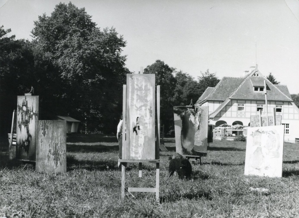 The various editions of the Osieki meetings were accompanied by post-plenary exhibitions, whose formula evolved over the eighteen years of the event. During the first two events, an innovative approach to presenting the works created during the plein-air workshops was already evident. It consisted in contextualising the works, i.e. placing them in the natural surroundings of the Osieki manor house. This practice stems from the limitations of the Provincial National Council Training Centre premises, where the meetings were held, and from the need for artistic experimentation enshrined in the principles of the event programmes.