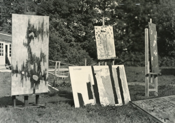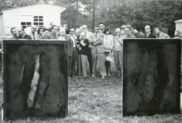 The Osieki events inverted the situation familiar from traditional plein-air painting workshops drawing on the 19th-century tradition of painting pictures in nature and exhibited indoors; the meeting participants created their works indoors in studios and exhibited them outside. Julian Przyboś, who visited the plein-air workshop in 1964, wrote: “We are not painting a landscape, but since what we are painting will be shown in the open air, let us paint not a landscape, for that is already there, but for this landscape.” (Plein-air, Życie Warszawy, no. 251, 18/19 October 1964). The way in which the paintings were exhibited at the first Plein Airs helped to blur the boundary between the object and its surroundings, foreshadowing the spatial experiments that were fully manifested in Osieki in 1965. The active factor thus wove its way into the works and activities right from the first Osieki event, growing in strength and immediacy from year to year. An object presented in a natural setting gained causality and relationality, reflecting the climate of artistic exploration at the time on the eve of the heyday of happenings, environment and performance. The documentation reveals the exhibited images’ action potentiality and the forging of a formula for a modern post-exhibition.
