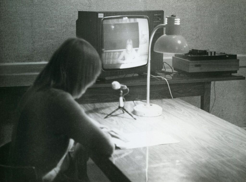 Hairstyles I-IV come from the series Stimulated Situations developed by the artist in 1976-1989. This series also included a performance by Kutera in Osieki on September 16, 1981. It consisted of conducting a dialogue with herself. An element of the performance was a television screen on which a video was projected, showing the artist turning directly to the camera that recorded her statement. The work addressed the issue of truth in the face of growing media coverage. It offered a reflection on the ontological status of the subject, split into different forms of transmission: the artist’s read-out text, her physical presence during the performance, filmic mediation, and the photographic record of the action. The updated reenactment of the performance, took place during the opening gala of the exhibition Opening. Koszalin Plein Airs in Osieki 1963-1981 at the Koszalin Philharmonic on November 26, 2023. Four photographs of the artist featured in the exhibition formed an integral part of the event.