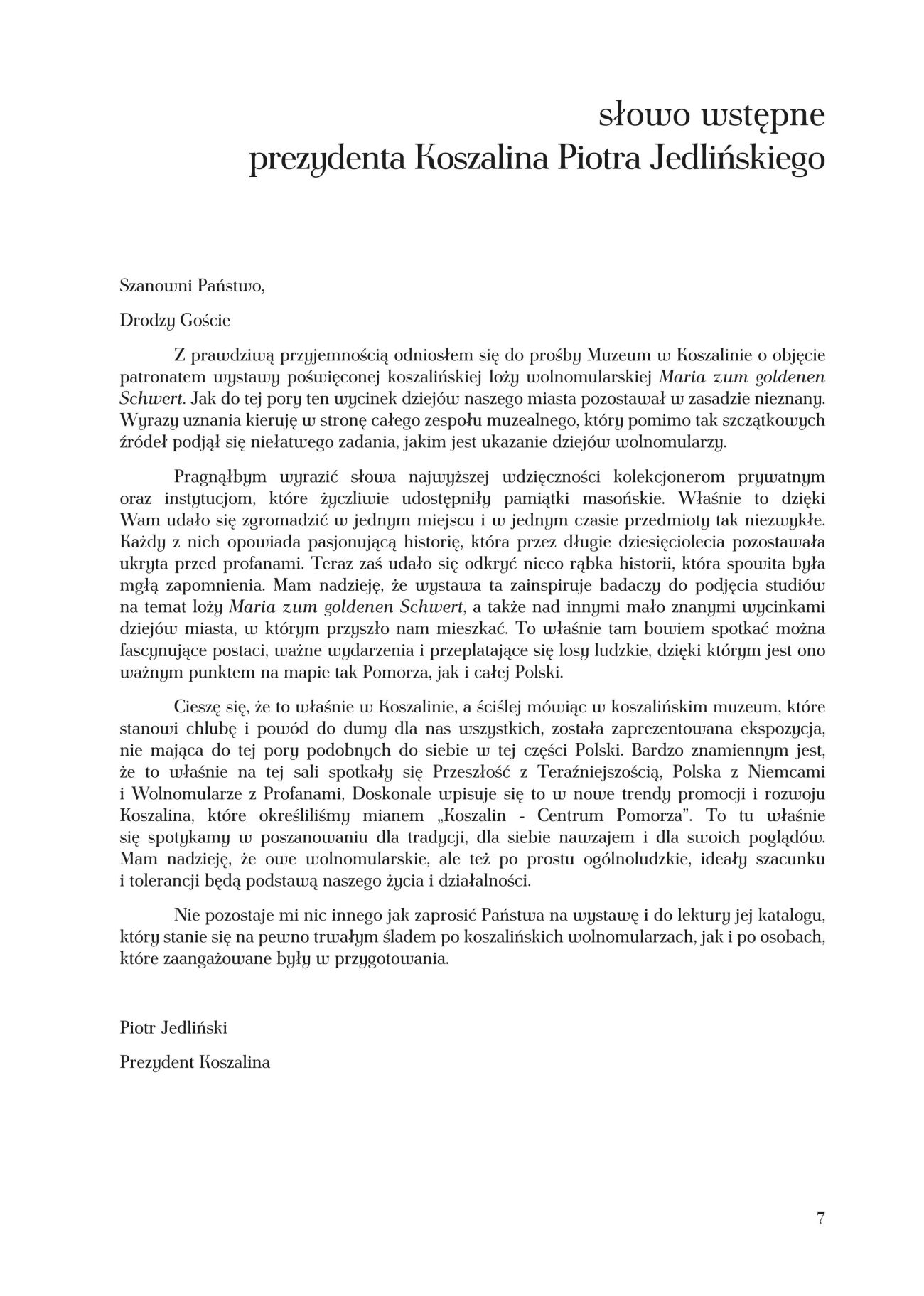 - Piotr Jedliński – Słowo wstępne
