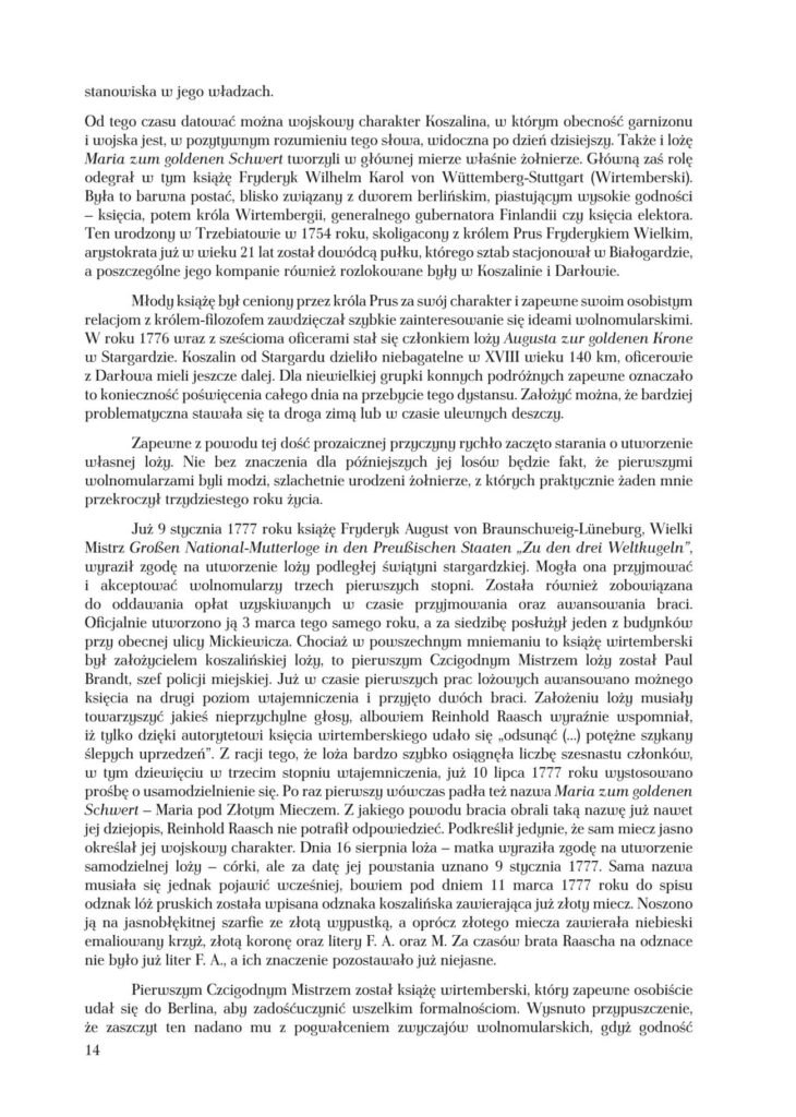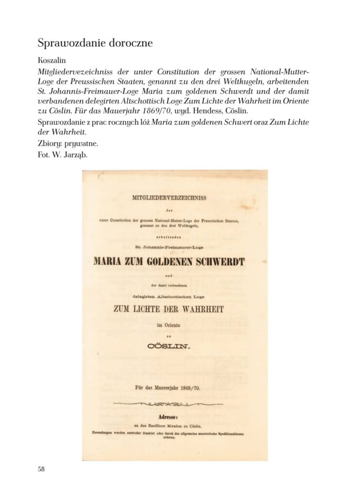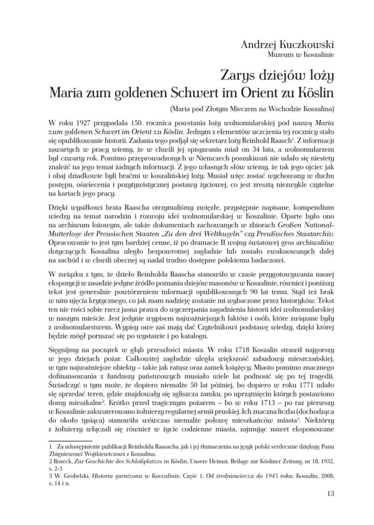 - Andrzej Kuczkowski – Zarys dziejów loży Maria pod Złotym Mieczem na Wschodzie Koszalina