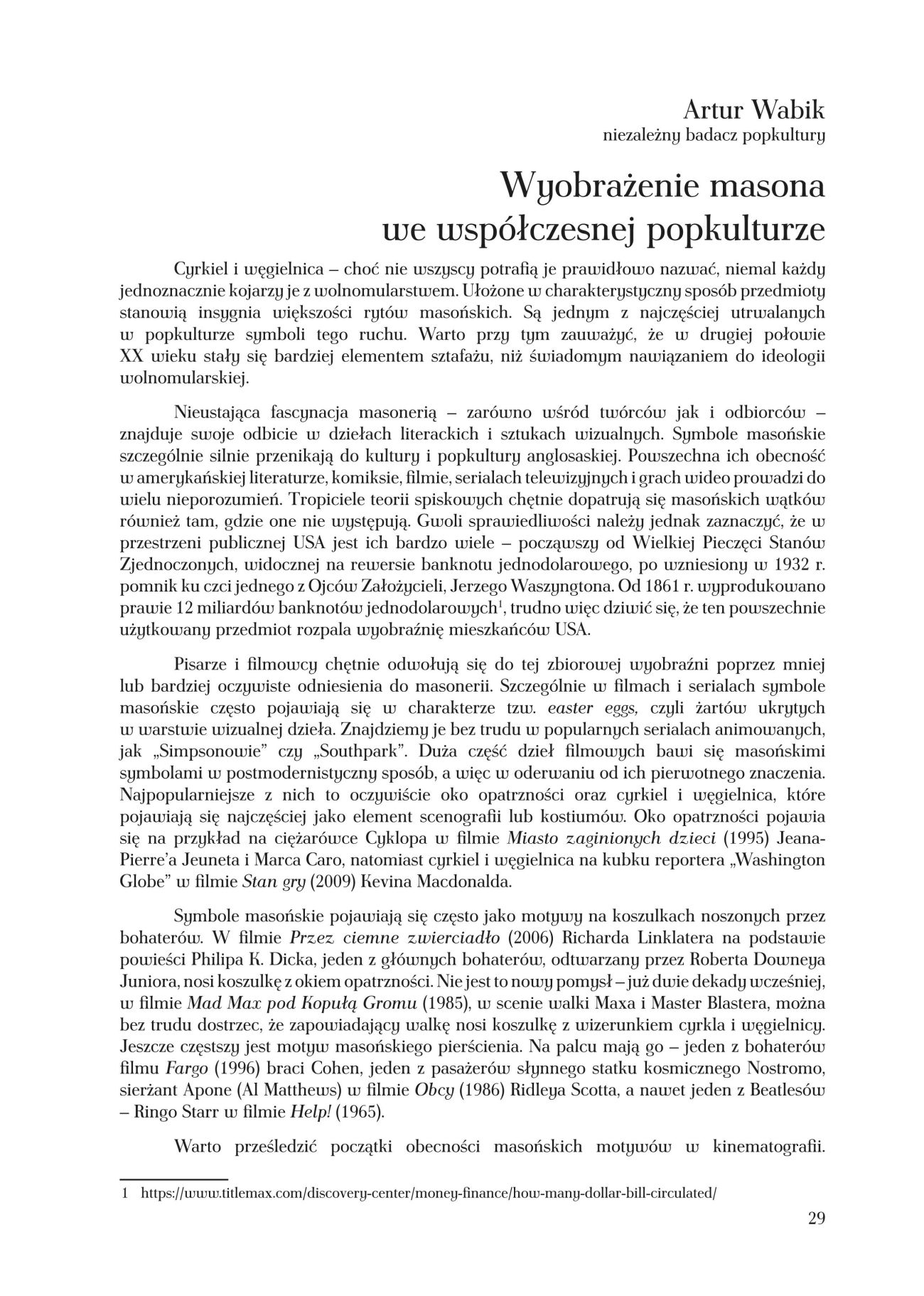 - Artur Wabik – Wyobrażenie masona we współczesnej popkulturze