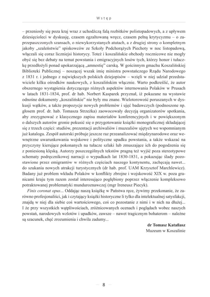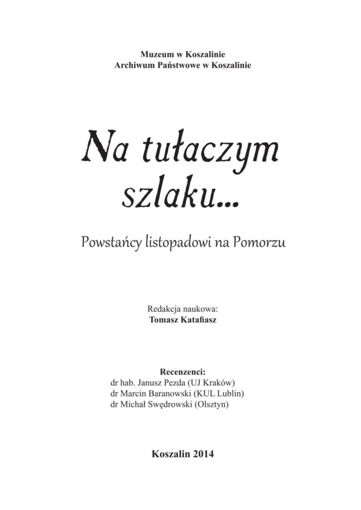 - Tomasz Katafiasz – Katalog wystawy „Na tułaczym szlaku – powstańcy listopadowi na Pomorzu”