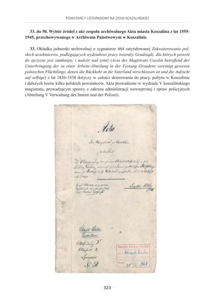 - Joanna Chojecka – Powstańcy listopadowi na ziemi koszalińskiej w źródłach archiwów państwowych w Koszalinie i Szczecinie