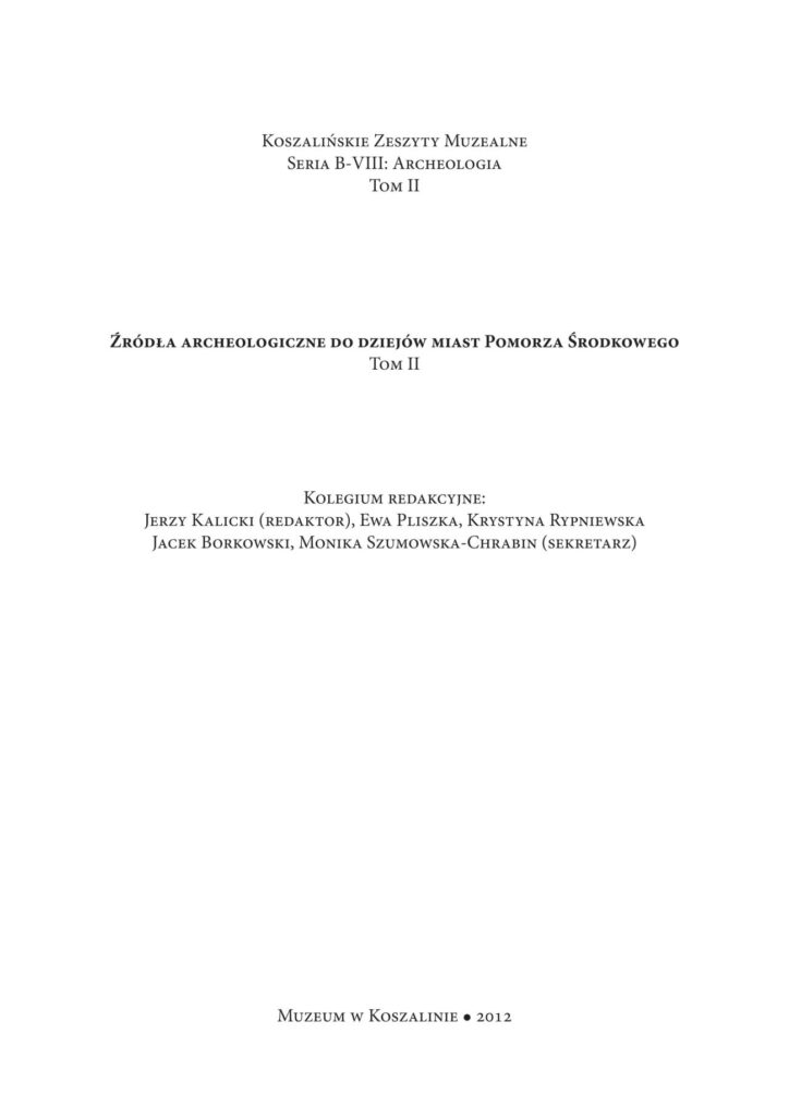 Zdjęcie poglądowe okładki książki pod tytułem "Źródła archeologiczne do dziejów małych miast Pomorza Środkowego".