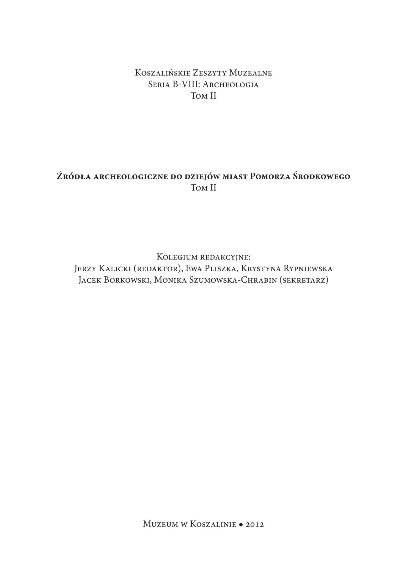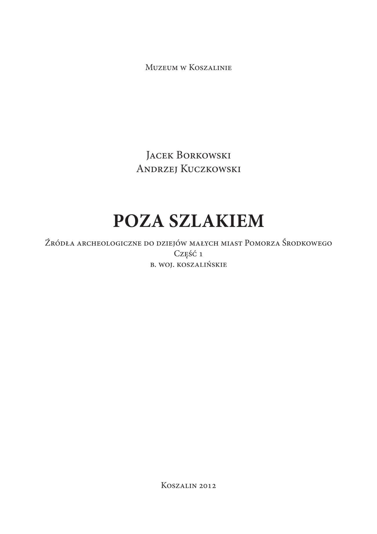 Poza szlakiem. Źródła archeologiczne do dziejów małych miast Pomorza Środkowego