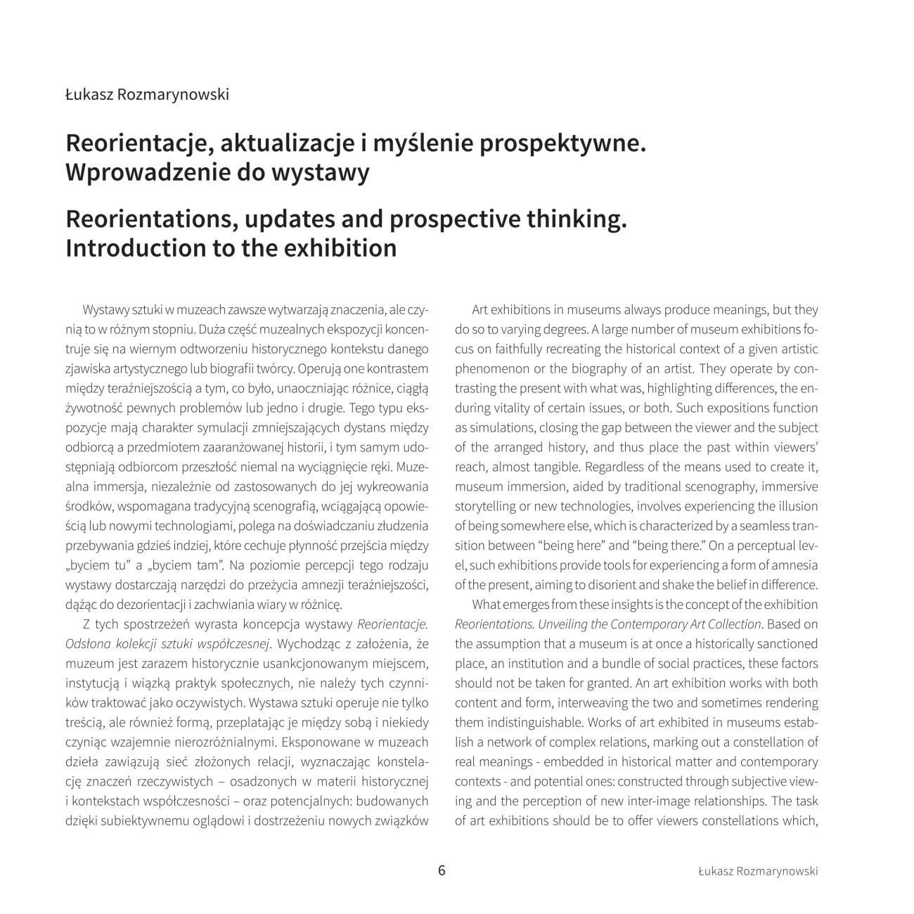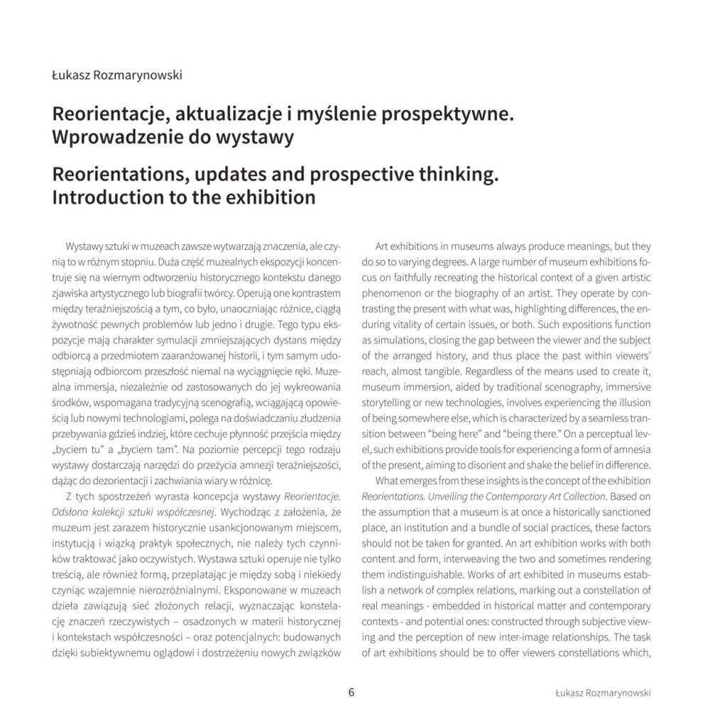 - Łukasz Rozmarynowski – Reorientacje, aktualizacje i myślenie prospektywne. Wprowadzenie do wystawy / Reorientations, updates and prospective thinking. Introduction to the exhibition