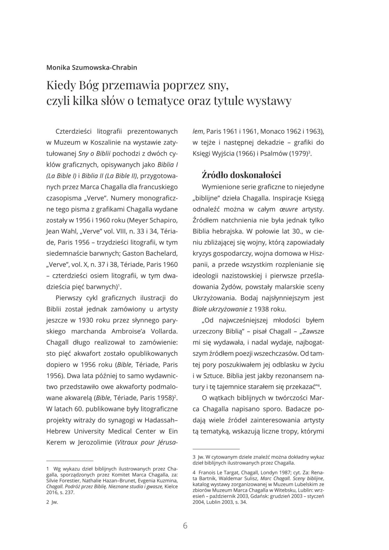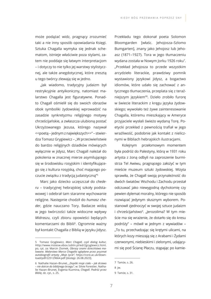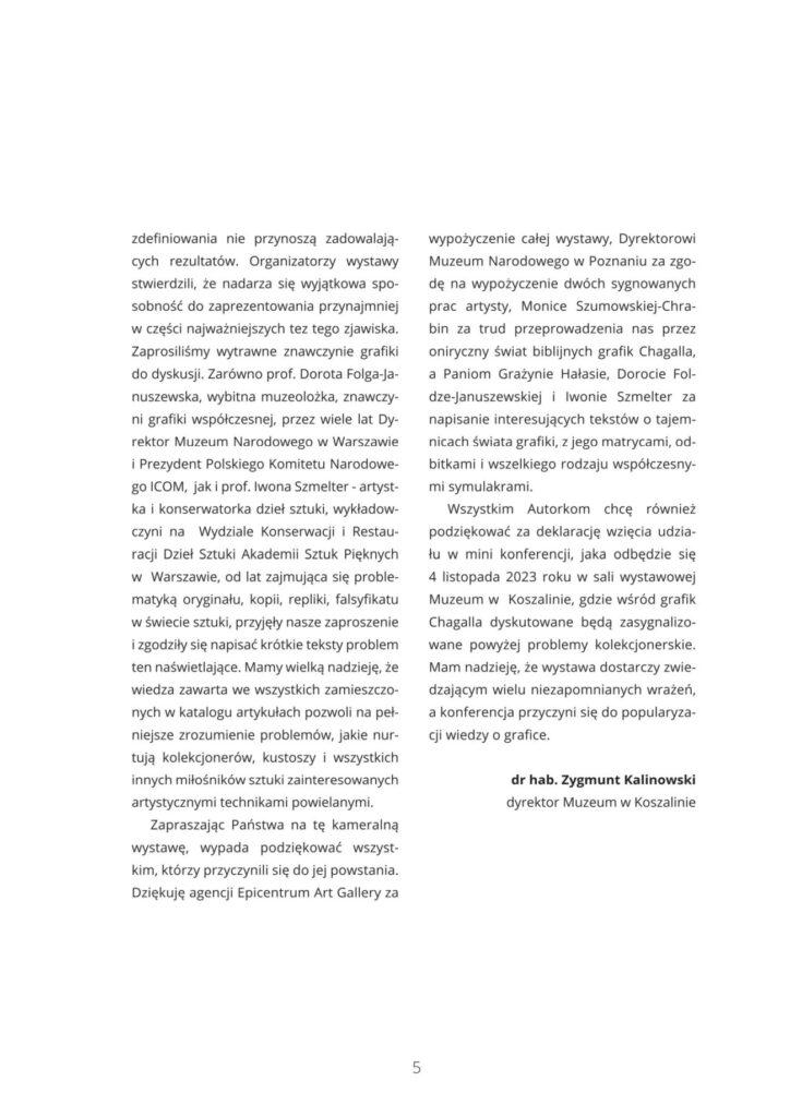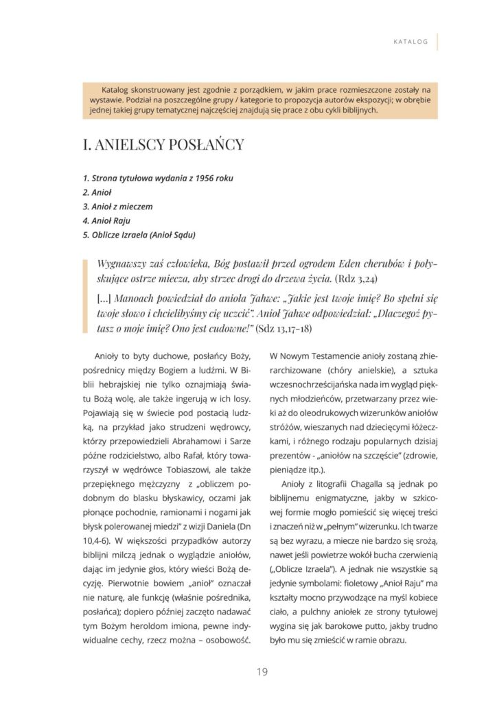 Katalog wystawy czasowej Marc Chagall „Sny o Biblii”, która prezentowana była w Muzeum w Koszalinie od 15 października do 5 listopada 2023 roku. Była to wystawa, na której zaprezentowano zestaw 41 litografii, po raz pierwszy opublikowanych w latach 1956 i 1960 przez francuskie czasopismo „Verve”.