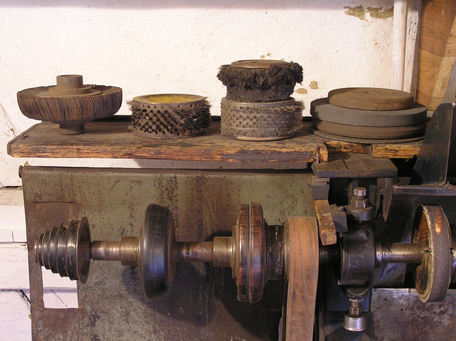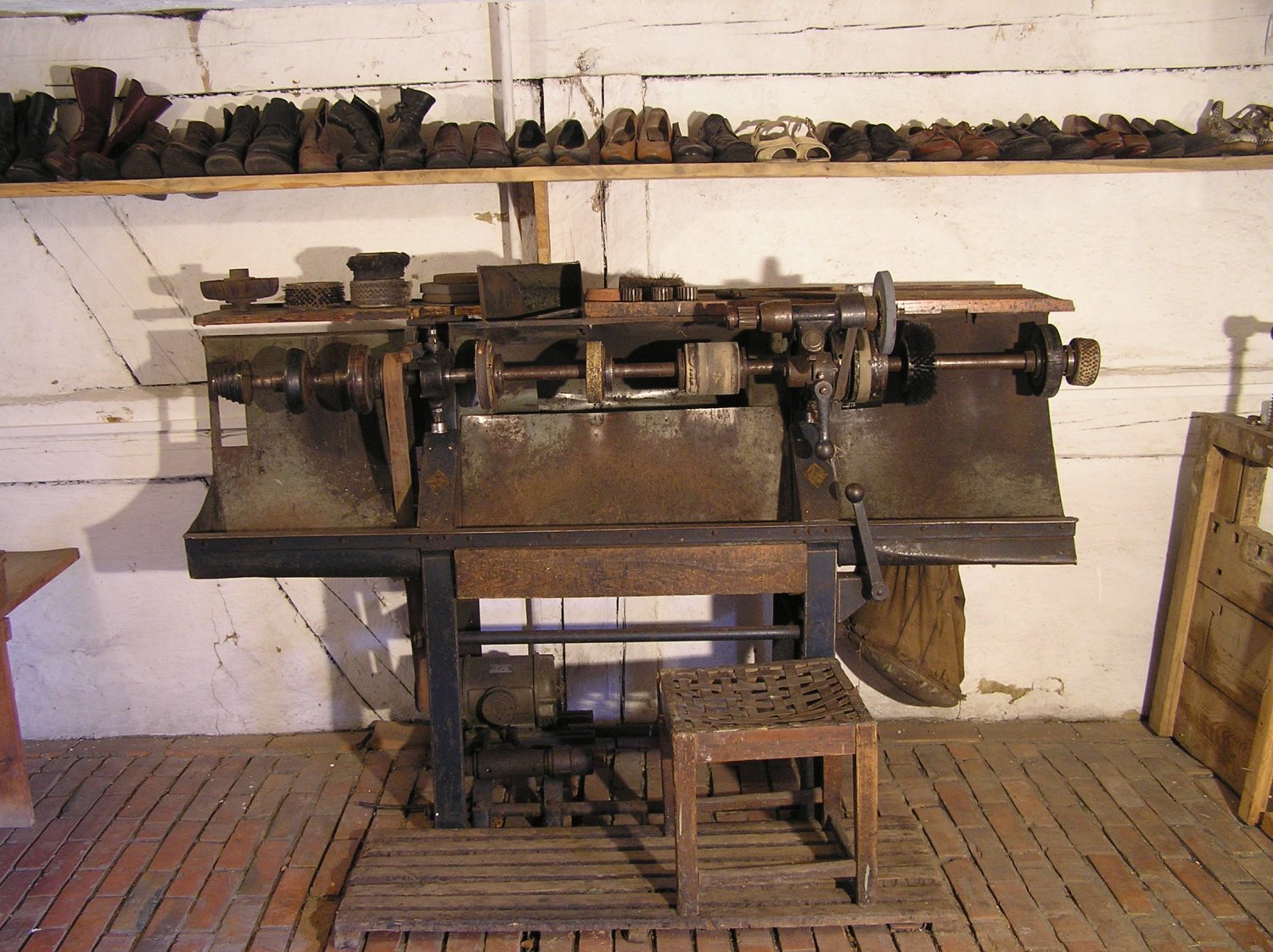 Największą maszyną prezentowaną na wystawie jest czyszczarka – zaopatrzona w liczne tarcze kamienne o zróżnicowanej ziarnistości oraz okrągłe szczotki służyła do czyszczenia i polerowania zelówek.
