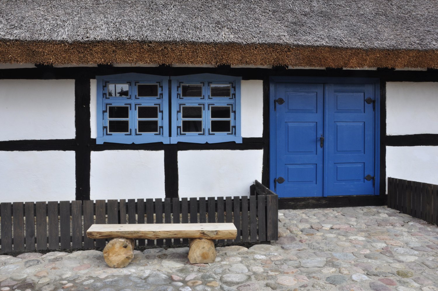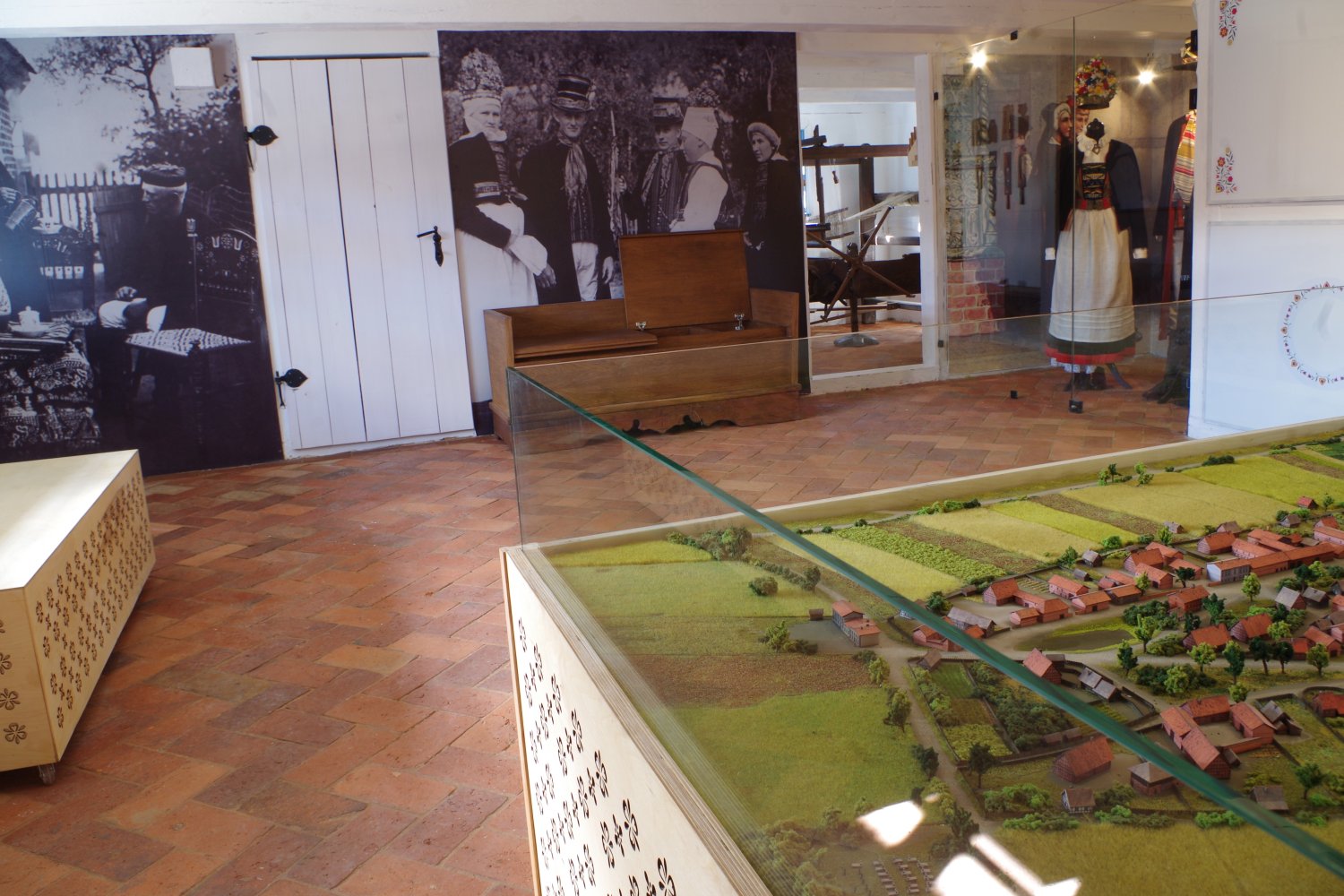 Na potrzeby naszego Muzeum wykonano rekonstrukcję dwóch obiektów z zagrody – chałupy i stodoły z zachowaniem ich orientacji wobec siebie i drogi wiejskiej. Oba budynki zbudowane są w konstrukcji ryglowej, dachy poszyte trzciną.